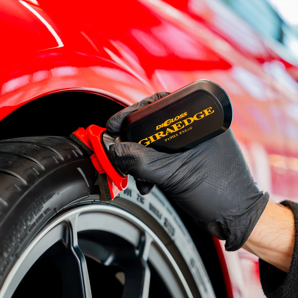 Abrillantador de neumáticos SOFT99 Digloss Gira Edge con esponja aplicadora integrada que se adapta a la forma del neumático.