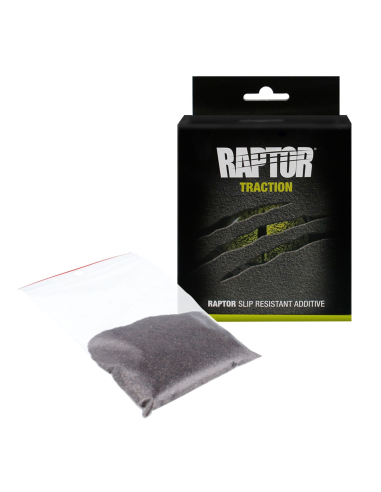 Aditivo antideslizante RAPTOR Traction para añadir directamente a las botellas de revestimiento protector RAPTOR antes de la aplicación. RAPTOR Traction viene en una bolsa de 200g, lo suficiente para llenar una botella de RAPTOR para una aplicación típica antideslizante.