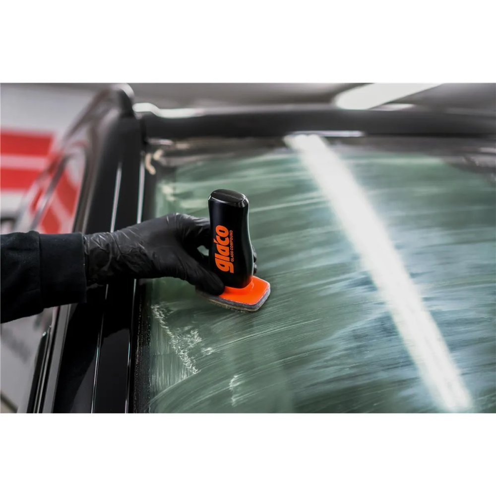 El pulidor de cristales Soft99 Glaco Glass Compound Roll On elimina fácilmente los agentes desmoldantes y los contaminantes ambientales del parabrisas sin ensuciarse las manos.